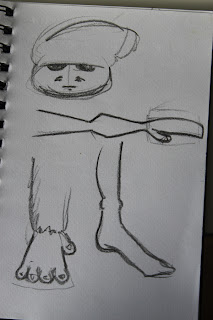On the way home on the train, I started to sketch out how I wanted my gorilla to look. In the brief, it says 'Cornelius - a middle aged silver back gorilla, the most civilised and sensible occupant of the zoo by far.'